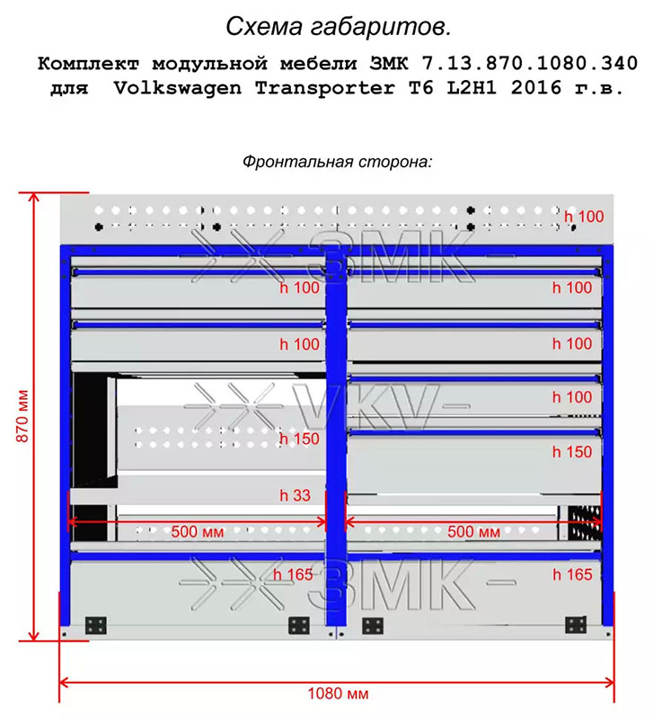 Комплект ЗМК 7.13.870.1080.340 предназначен для комплексного оснащения сервисных автомобилей системой хранения инструмента с целью осуществления выездного сервиса, монтажа или ремонта. Используется в организациях, занимающихся ремонтом сельскохозяйственной и погрузочной техники, дорожно-ремонтных служб и других. Все элементы стеллажей изготовлены из высококачественной стали толщиной 1 мм. Рамы из профильной стальной трубы квадратного сечения 20х20 мм имеют порошковое полимерное покрытие синего цвета. Все выдвижные ящики, дверные блоки и откидные крышки оснащены специальными фиксаторами, которые не позволяют им выдвигаться и открываться при движении автомобиля. Шаг отверстий для крепления составляет 52 мм. Перфорированные стенки стеллажа позволяют фиксировать с помощью резиновых креплений вспомогательный инструмент или оборудование. Допустимая нагрузка на все ящики до 35 кг, на все полки до 50 кг, на столешницы до 100 кг. В комплект стеллажа входят все необходимые метизы, фиксаторы, кронштейны и усилители. Они поставляются в разобранном виде в надежной упаковке.
